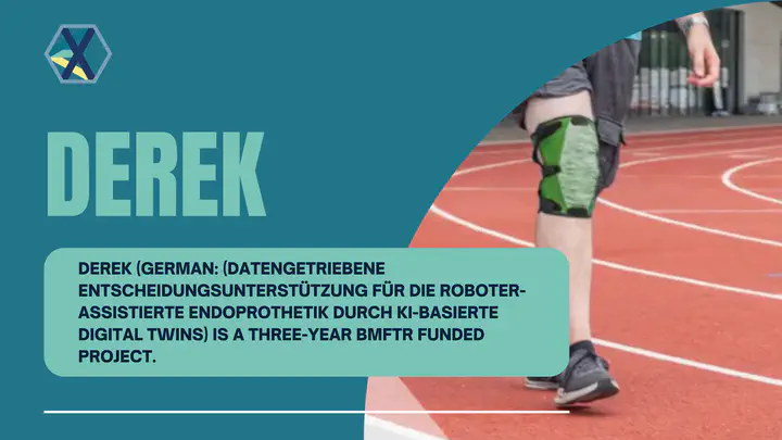 DEREK (German: (Datengetriebene Entscheidungsunterstützung für die Roboter-assistierte Endoprothetik durch KI-basierte Digital Twins) is a three-year BMFTR funded project with a total volume of 1.47 Million Euros.