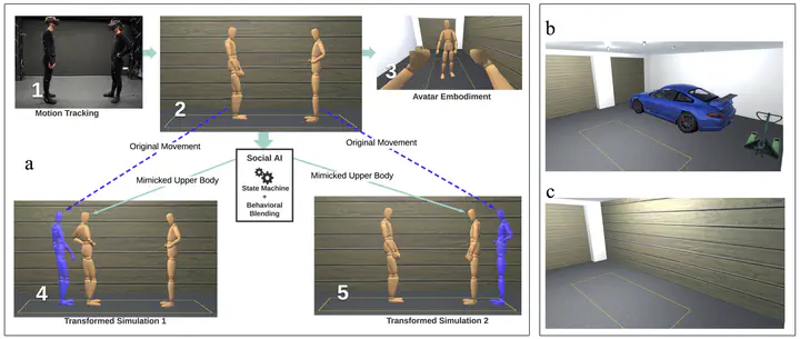 Humans communicate to a large degree through nonverbal behavior. Nonverbal mimicry, i.e., the imitation of another’s behavior can positively affect the social interactions. In virtual environments, user behavior can be replicated to avatars, and agent behaviors can be artificially constructed. By combining both, hybrid avatar-agent technologies aim at actively mediating virtual communication to foster interpersonal understanding and rapport. We present a naïve prototype, the “Mimicry Injector”, that injects artificial mimicry in real-time virtual interactions. In an evaluation study, two participants were embodied in a Virtual Reality (VR) simulation, and had to perform a negotiation task. Their virtual characters either a) replicated only the original behavior or b) displayed the original behavior plus induced mimicry. We found that most participants did not detect the modification. However, the modification did not have a significant impact on the perception of the communication.