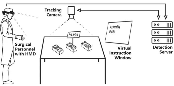 Error-free surgical procedures are crucial for a patient’s health. However, with the increasing complexity and variety of surgical instruments, it is difficult for clinical staff to acquire detailed assembly and usage knowledge leading to errors in process and preparation steps. Yet, the gold standard in retrieving necessary information when problems occur is to get the paperbased manual. Reading through the necessary instructions is time-consuming and decreases care quality. We propose ARTFM, a process integrated manual, highlighting the correct parts needed, their location, and step-by-step instructions to combine the instrument using an augmented reality head-mounted display.