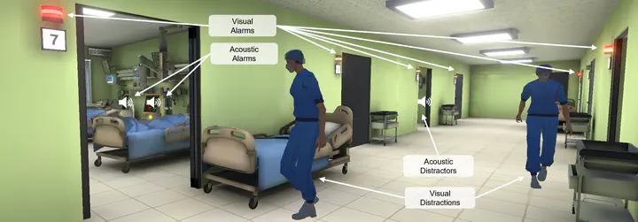 Medical personnel working in intensive care units (ICUs) are continuously exposed to a multitude of alarms emanating from various monitoring devices, such as cardiac monitors, ventilators, or infusion pumps. The sheer volume of alarms, coupled with high false positive rates, can lead to alarm fatigue. This phenomenon compromises patient safety and places an additional burden on nurses who must diligently prioritize and respond to alarms in the highly dynamic environment. While the testing of stress-reducing strategies in a real ICU is challenging, virtual reality (VR) represents a powerful tool and methodology to simulate an ICU environment and test optimization scenarios for alarm display strategies. For example, redistributing alarms to responsible individuals (personalized information presentation) has been proposed as a solution, but testing in real ICU environments is not applicable due to critical patient safety. In this paper, we present a VR simulation of an ICU to simulate comparable stress situations, as well as to assess the impact of a selective and personalized alarm representation strategy in an evaluation study in two conditions. A stress condition mirrors the current ubiquitous audible alarm distribution in most ICUs, where alarms are heard non-patient-specific throughout the ward. In an experimental condition, alarms are filtered patient-specific to reduce information overload and noise pollution. Our user study with medical personnel and novices shows that stress levels can be simulated with our system as indicated by physiological responses. Further, we show that the perceived task load can be reduced with selective information presentation. We discuss the potential benefits of ICU simulations as a methodology and personalized alarm distribution as a first potential strategy for future technologies in ICUs.