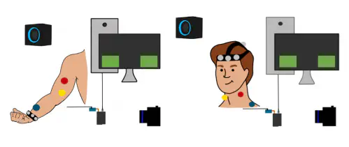 Low motion-to-photon latencies between physical movement and rendering updates are crucial for an immersive virtual reality (VR) experience and to avoidusers’ discomfort and sickness. Current methods aim to minimize the delay between the motion measurement and rendering at the cost of increasing technical complexity and possibly decreasing accuracy. By relying on capturing physical motion, these strategies will, by nature, not result in zero latency rendering or will be based on prediction and resulting uncertainty. This paper presents and evaluates a novel alternative and proof of principle for VR motion tracking that could enable motion-to-photon latencies of zero and below zero in time. We termed our concept Neural Motion Tracking, which we define as the sensing and assessment of motion through human neural activation of the somatic nervous system. In contrast to measuring physical activity, the key principle is that we aim to utilize the physiological timeframe between a user’s intention and the execution of motion. We aim to foresee upcoming motion ahead of the physical movement, by sampling preceding electromyographic signals before the muscle activation. The electromechanical delay (EMD) between potential change in the muscle activation and actual physical movement opens a gap in which measurement can be taken and evaluated before the physical motion. In a first proof of principle, we evaluated the concept with two activities, arm bending and head rotation, measured with a binary activation measure. Our results indicate that it is possible to predict movement and update a rendering up to 2 ms before its physical execution, which is assessed by optical tracking after approximately 4 ms. However, to make the best use of this advantage, electromyography (EMG) sensor data should be as high quality as possible (i.e., low noise and from muscle-near electrodes). Our results empirically quantify this characteristic for the first time when compared to state-of-the-art optical tracking systems for VR. We discuss our results and potential pathways to motivate further work toward marker- and latency-less motion tracking.